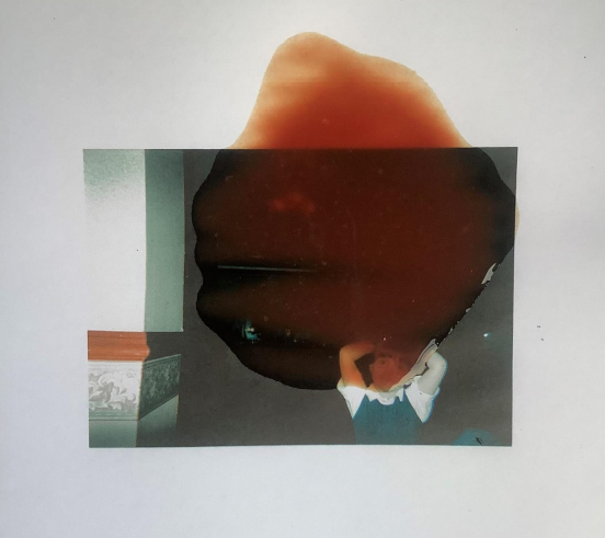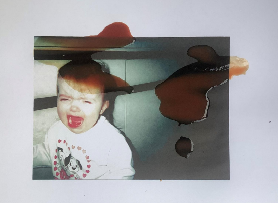 Bloody hell displays photocopies of childhood photographs of myself. I used childhood photos to create a more emotive response. Over the photocopies is menstrual blood, disfiguring the images and creating an eerie setting for viewers to think of the situation at hand. That being the inequality women face within the arts.